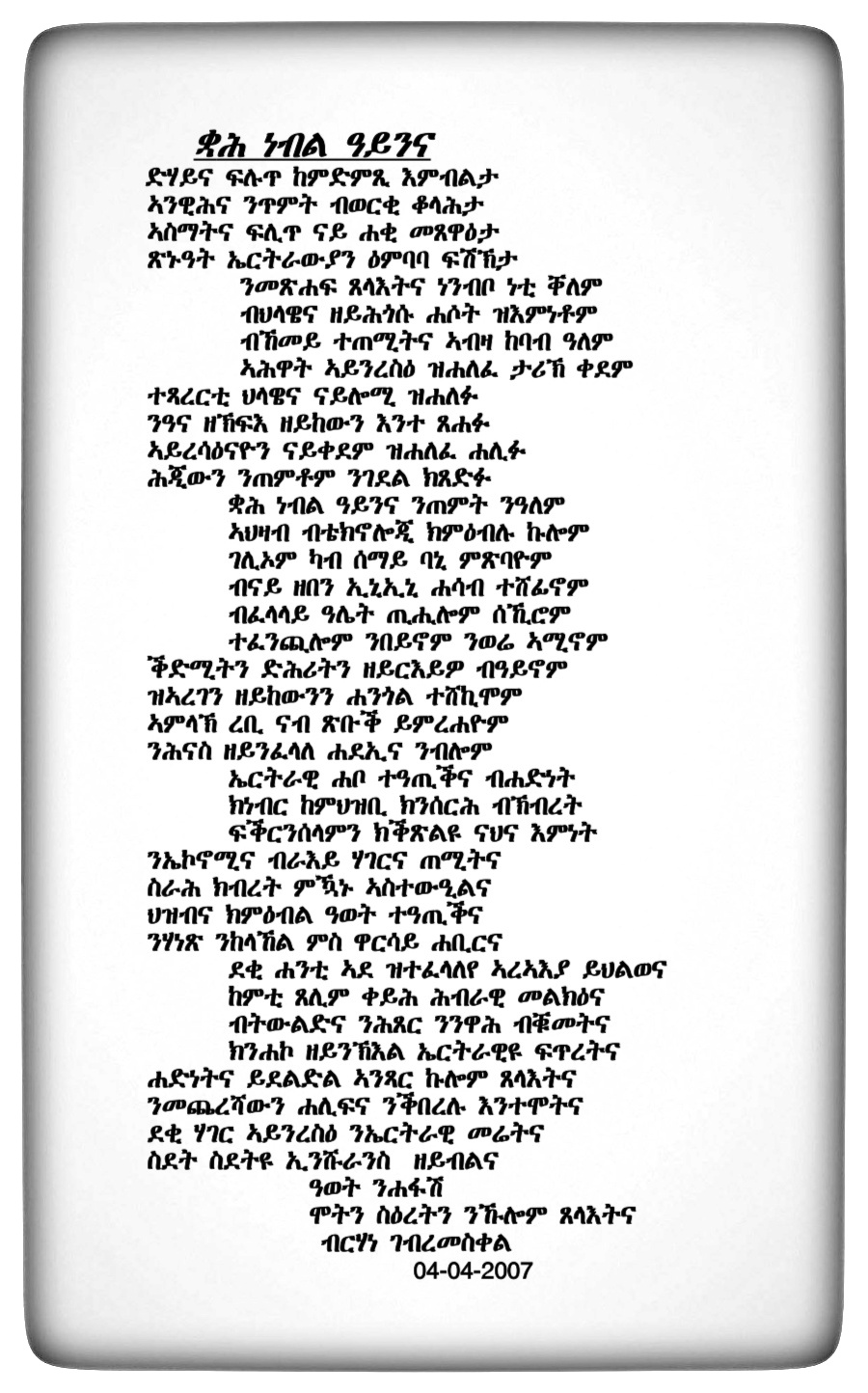 ++ ቋሕ ነብል ዓይንና ++ ብብጻይ ብርሃነ ገብረመስቀል - ሽቱትጋርት (ጀርመን)