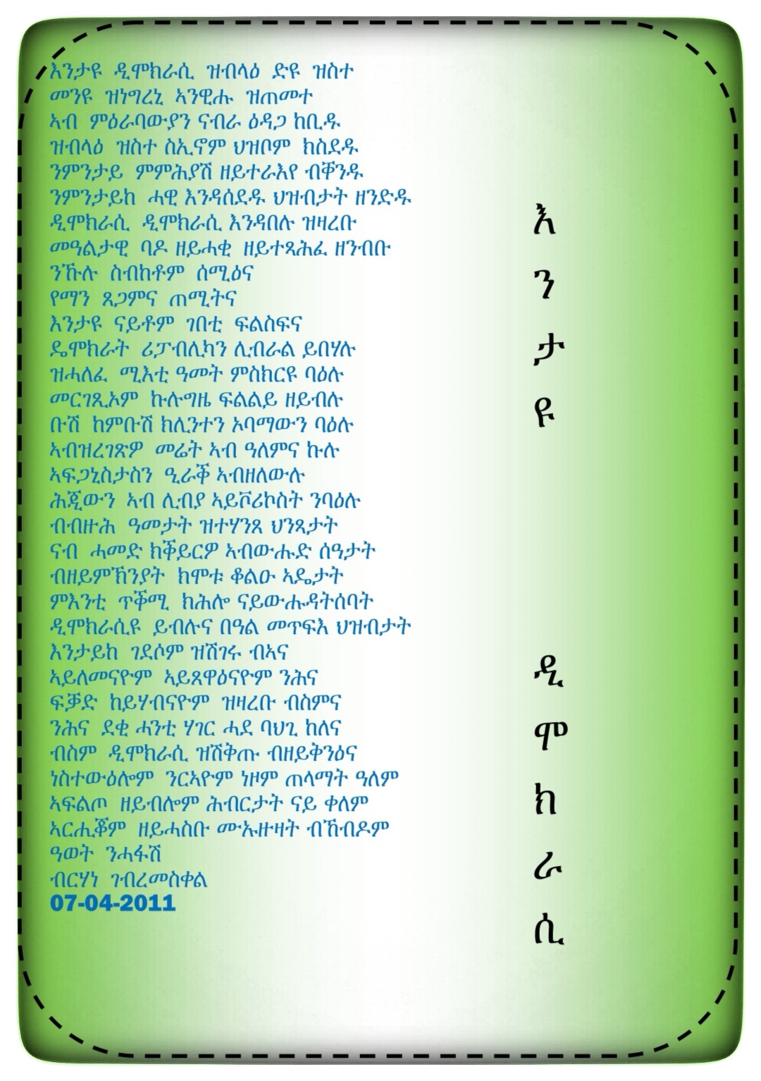 ++እንታዩ ደሞክራሲ ?++ ብብጻይ ብርሃነ ገብረመስቀል (ሽቱትጋርት / ጀርመን)