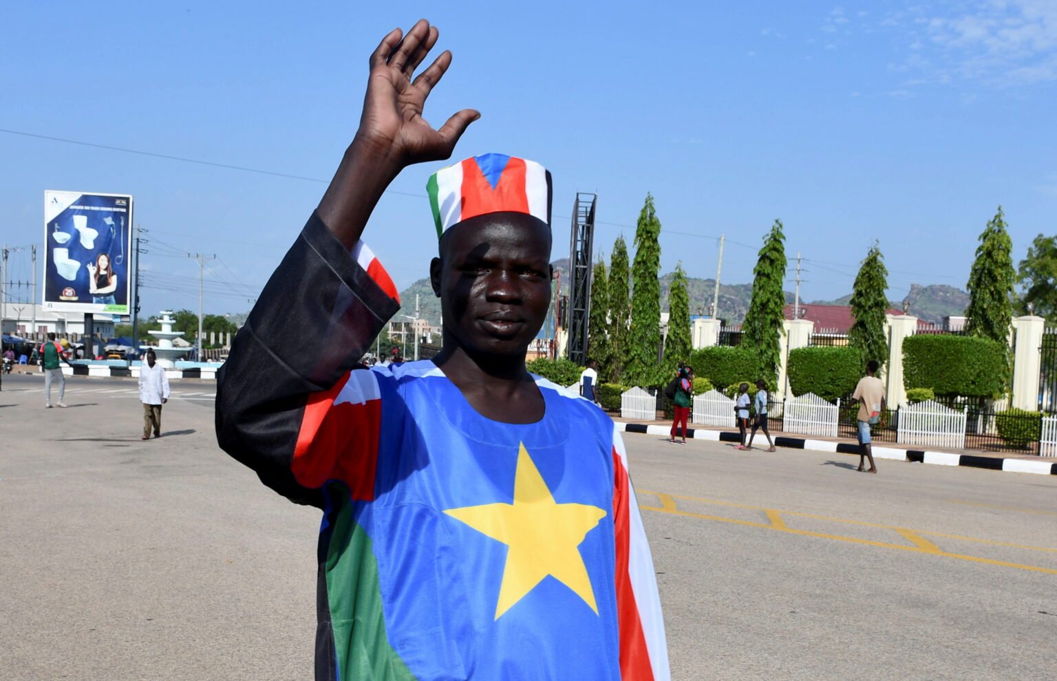*A South Sudanese man gestures on the road as the country marks the 10th anniversary of independence, in Juba, South Sudan July 9, 2021. REUTERS/Samir Bol