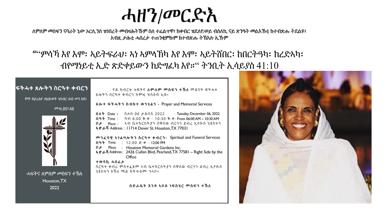 ለምለም መስፍን ናባሪት ኒው ኦርሊንስ ዝነበረት መብዛሕትኹም ስለ ተፈልጥዋ፣ ክቀብር ዝደለየ/ወይ ብስለኪ ናይ ጽንዓት መልእኽቲ ከተብጽሑ ትደልዩ፣