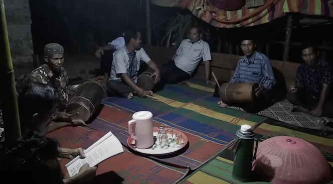 Simelulue men gather to perform ‘nandong,’ a traditional local song.