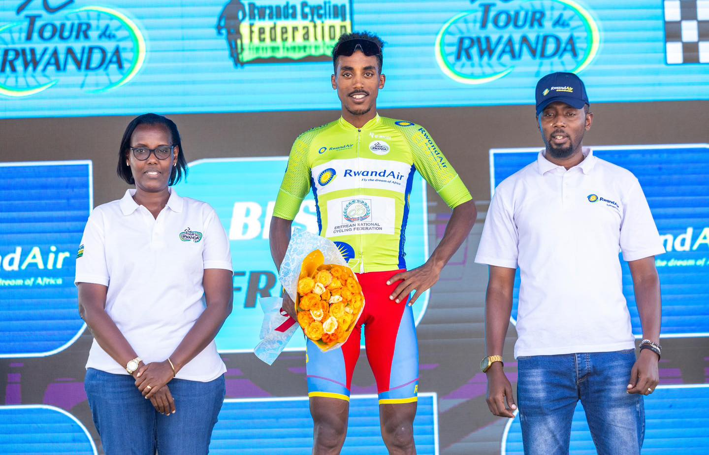 From the climb through the Nyungwe National Park (8.7 km at 5.7%) – before the halfway point – the pace increased for the chasers. The lead of the attackers quickly diminished and the peloton thinned out just as quickly. An elite group of only seventeen riders formed behind the leaders. This included Delbove, his teammate Fabien Doubey (second in the classification), Oliver Mattheis (third), two-time stage winner Brady Gilmore (fourth) and Henok Mulubrhan (fifth). The big favourites for the final victory were therefore alert.