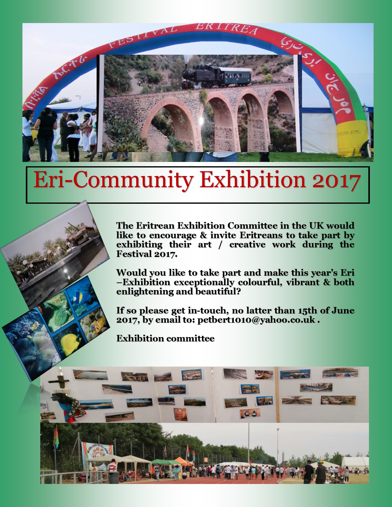 Please post the attached file for announcement of participation at Exhibition in Eritrean Festival UK 2017.