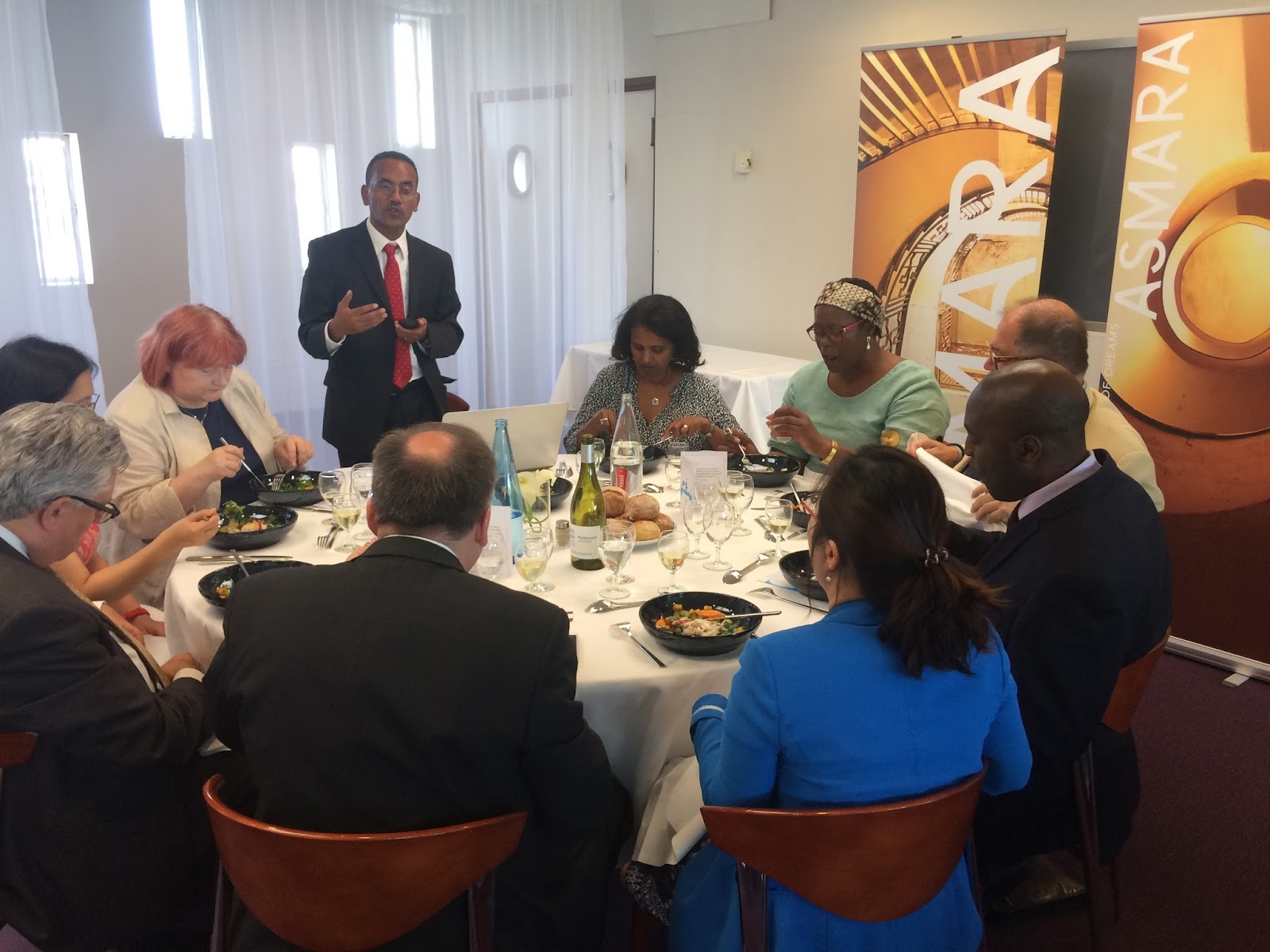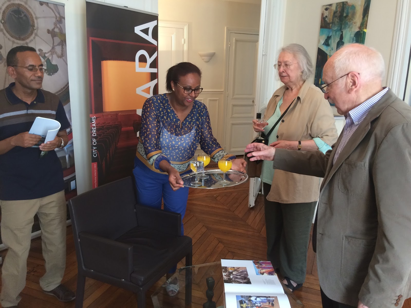 Ambassador Hanna Simon opened the reception, indicated that the reception & exhibition is being staged under the theme "Asmara: City of Dreams". she said is part of the campaign underway in Paris and in London at the Royal Institution British Architect RIBA with a view to placing Asmara in the UNESCO World Heritage List.