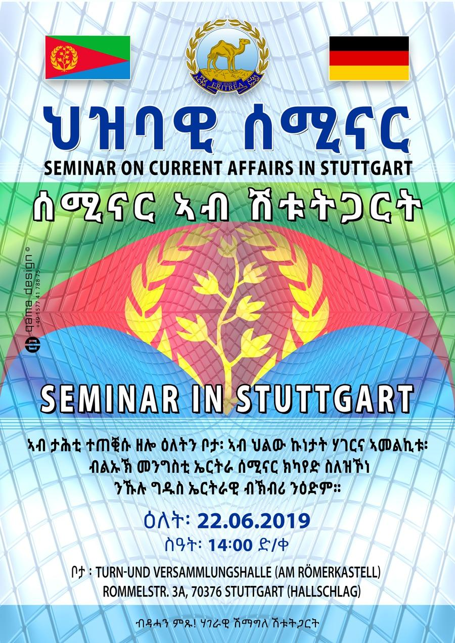 ህዝባዊ ስሚናር ብልኡኽ መንግስቲ ኤርትራ ኣብ ከተማ ሽቱትጋርት ብዕለት 22-06-2019 *** Public Seminar - on Current Affairs in STUTTGART - GERMANY 22 June 2019