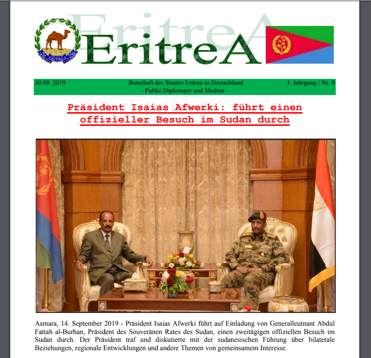 Meldungen aus Eritrea - 30 Sep 2019 - 25te Ausgabe - Herausgeber: Botschaft des Staates Eritrea in Deutschland – Abt. für Public Diplomacy und Medien