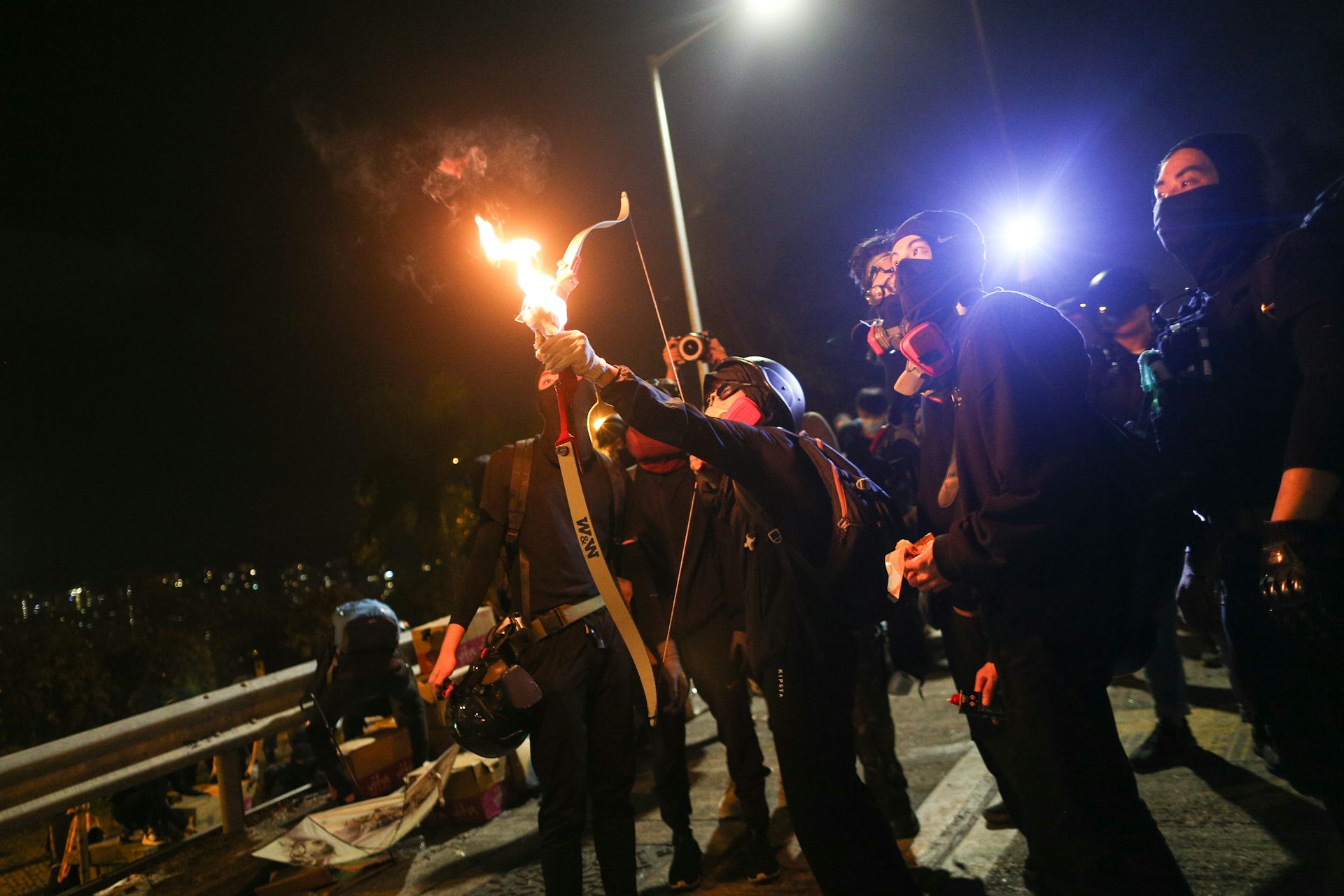 Preparing for a clash with police at the Chinese University of Hong Kong.