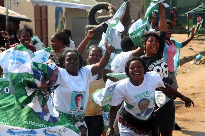 Supporters of Zambia’s president-elect Edgar Lungu in 2016. The country is known for peaceful polls, but this one was marked by clashes.