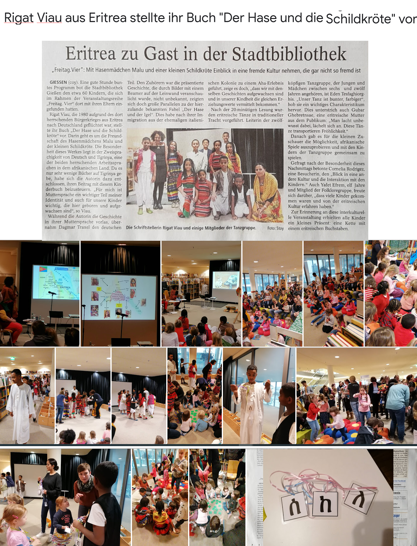 Rigat Viau, die 1980 aufgrund des dort herrschenden Bürgerkrieges aus Eritrea nach Deutschland geflüchtet war, stellte ihr Buch "Der Hase und die Schildkröte" vor. Darin geht es um die Freundschaft des Hasenmädchens Malu und der kleinen Schildkröte. Die Besonderheit dieses Werkes liegt in der Zweisprachigkeit von Deutsch und Tigrinya, eine der beiden herrschenden Arbeitssprachen in dem afrikanischen Land. Da es nur sehr wenige Bücher auf Tigrinya gebe, habe sich die Autorin dazu entschlossen, ihren Beitrag mit diesem Kinderbuch beizusteuern. "Für mich ist Muttersprache ein wichtiger Teil meiner Identität und auch für unsere Kinder wichtig, die hier geboren und aufgewachsen sind", so Viau.