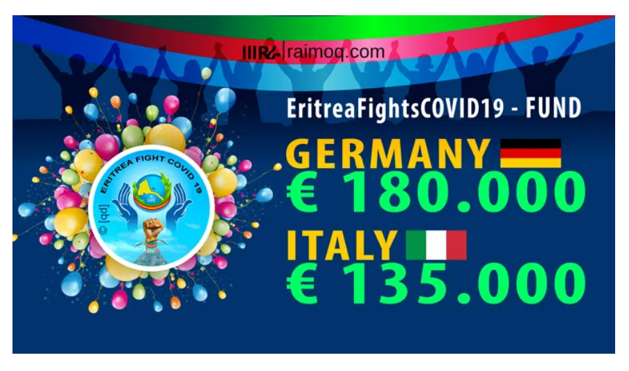 Eritrean nationals residing in Germany and Italy donated € 315.000 to curtail spread of corona virus in Eritrea. The contribution of donation will continue.