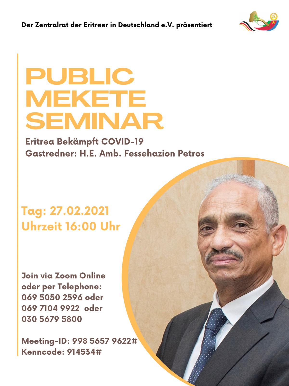 PUBLIC MEKETE SEMINAR for Eritrean in Germany on 27-02-2021 - 16.00 - by H.E. Ambassador Fessehazion Petros