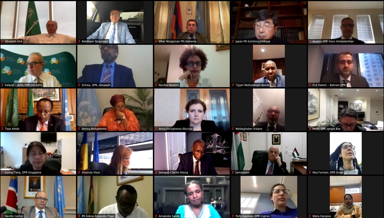 H.E. Mr Osman Saleh, the Eritrean Foreign Minister, addressed the gathered dignitaries and outlined Eritrea’s response to the challenges posed by the Covid-19 pandemic. In his briefing the Minster explained that due to the robust measures that Eritrea had taken and the heroic effort of everyone, especially the health care workers, the devastating effect of the pandemic had been contained, with Eritrea registering one of the smallest number of deaths worldwide from the Covid19 pandemic. Minster Osman Saleh before closing his address expressed his profound gratitude to all frontline health workers across the globe that had fought against the Covid-19 pandemic. He in particular wanted to express his personal thanks and that of the Eritrean government and the people of Eritrea to the remarkable efforts made by Eritrea’s health workers to contain the deadly pandemic in the Country.