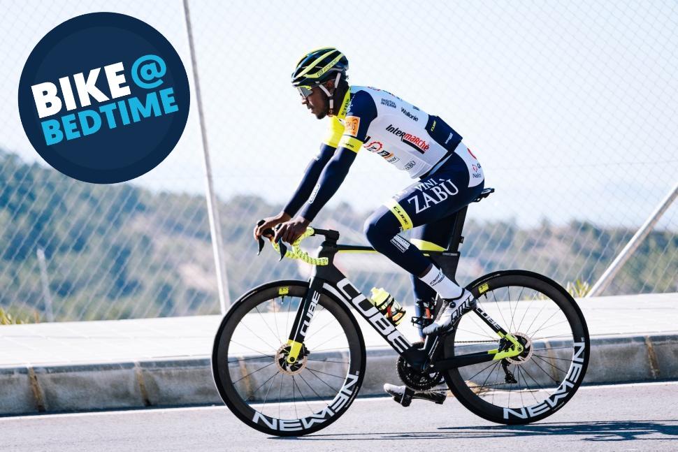 It's the bike in the Tweet (above) that Girmay actually rode for Gent-Wevelgem. The pictures at the top of the page (@cyclingmedia_agency) and down below are from a training camp earlier in the year. It's the same make and model of bike in these pics, but with deeper section wheels and a couple of other small differences ... just in case you were confused.