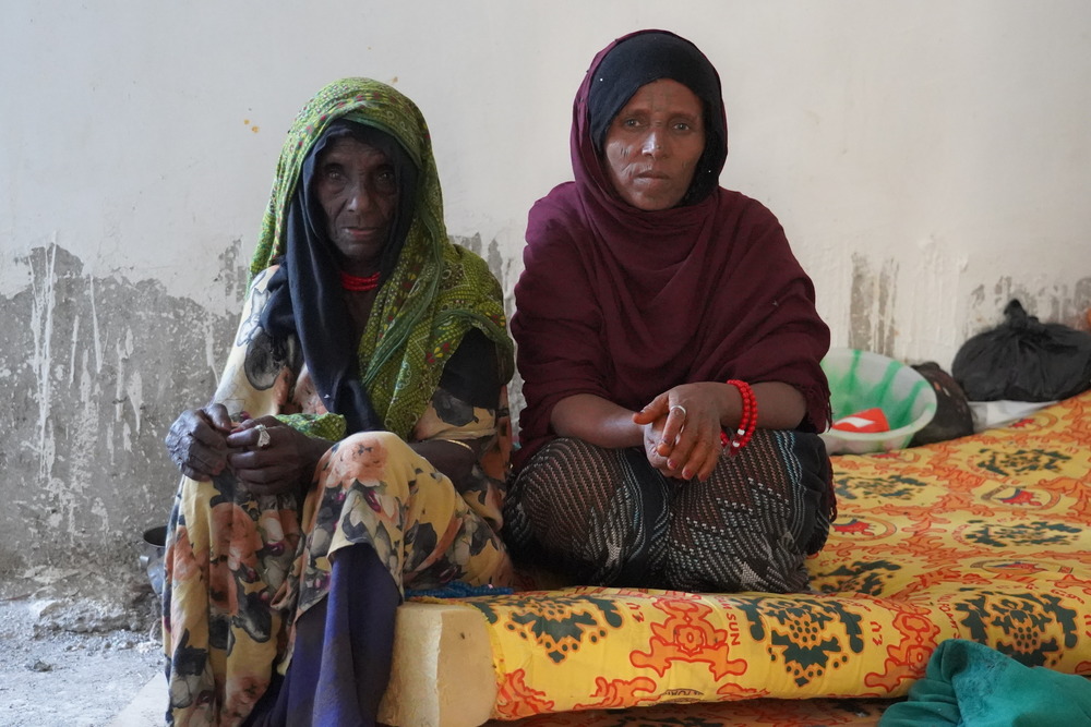 Two women sit on a mattress at Dubti General Hospital in Afar. The health centre has been overwhelmed by patients with serious injuries in recent weeks.
