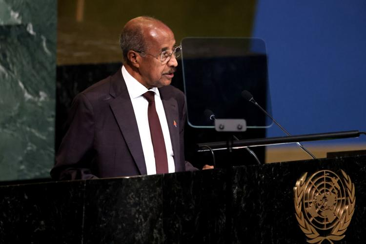 Minister for Foreign Affairs of Eritrea Osman Saleh Mohammed addresses the 77th session of the United Nations General Assembly, Monday, Sept. 26, 2022, at the U.N. headquarters.