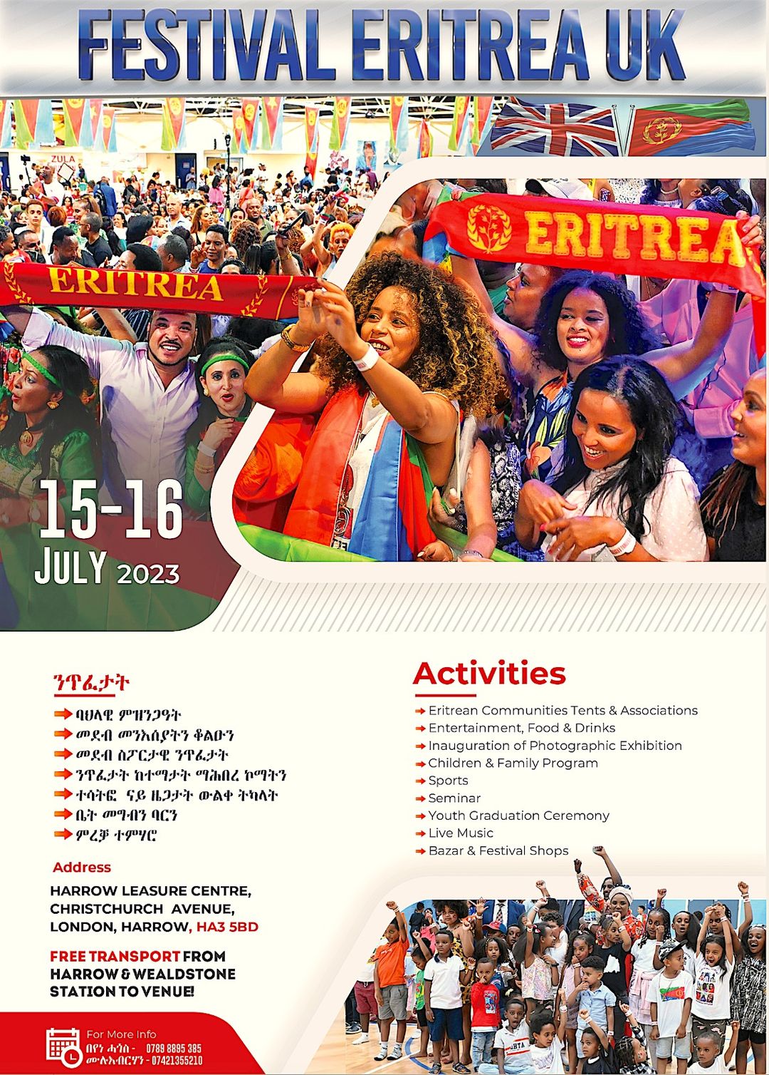 The Eritrea Festival 2023 UK will start on Saturday 15th of July with colourful performances.