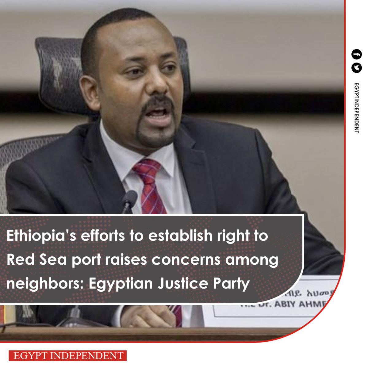 The Egyptian Justice Party said that Ethiopian Prime Minister Abiy Ahmed’s attempts to demand maritime access to a port on the Red Sea has raised concerns among Ethiopia’s neighboring countries.