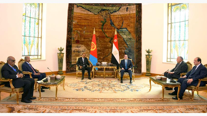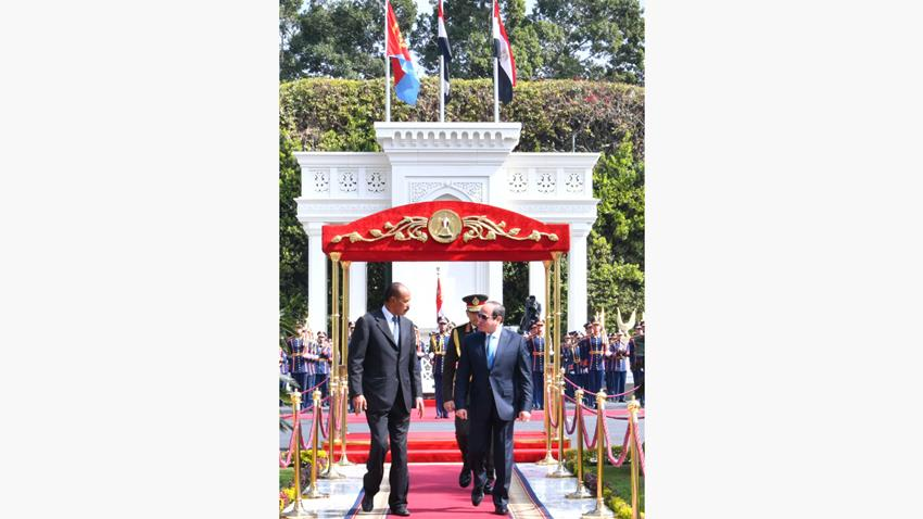 Today, President Abdel Fattah El-Sisi received President of the State of Eritrea, President Isaias Afwerki, at Al-Ittihadiya Palace, where an official reception ceremony was held, the national anthem was played, and the guards of honor was inspected. Spokesman for the Presidency, Counselor Dr. Ahmed Fahmy, said President El-Sisi welcomed the Eritrean President’s visit to Egypt. The two Presidents underscored interest to forge closer bilateral relations and to promote the level and depth of the two countries’ cooperation across various domains, notably in economic, commercial, and security fields. They also discussed stimulating trade between the two countries and enhancing investment flow by boosting the presence of Egyptian companies in the Eritrean market in sectors of interest and priority to both sides, particularly in areas where Egyptian companies enjoy comparative advantages and accumulated experience. The two Presidents also touched on the situation in the region, with a focus on developments in the Red Sea. President El-Sisi and President Afwerki tackled the grave security developments in the region and stressed the vital need for de-escalation and for containing the situation. The two Presidents also emphasized the necessity to reach an urgent and immediate ceasefire in the Gaza Strip, paving the way for full and sustainable delivery of humanitarian aid and relief to the sector, for launching the two-state solution and the establishment an independent Palestinian state, in accordance with the adopted international terms of reference. The two Presidents also deliberated on developments in the Horn of Africa, and were aligned with regard to the need to respect the sovereignty of the State of Somalia and support it by categorically rejecting all measures that would undermine this sovereignty. The situation in Sudan was also discussed. The two Presidents emphasized the importance of continued joint efforts between Egypt and Eritrea, within the framework of the path of neighboring countries. This shall aim to reach earnest solutions to the crisis, conducive to a ceasefire, putting an end to the humanitarian suffering the Sudanese people have been enduring and fulfilling their aspirations and hopes for achieving security, stability, and development.
