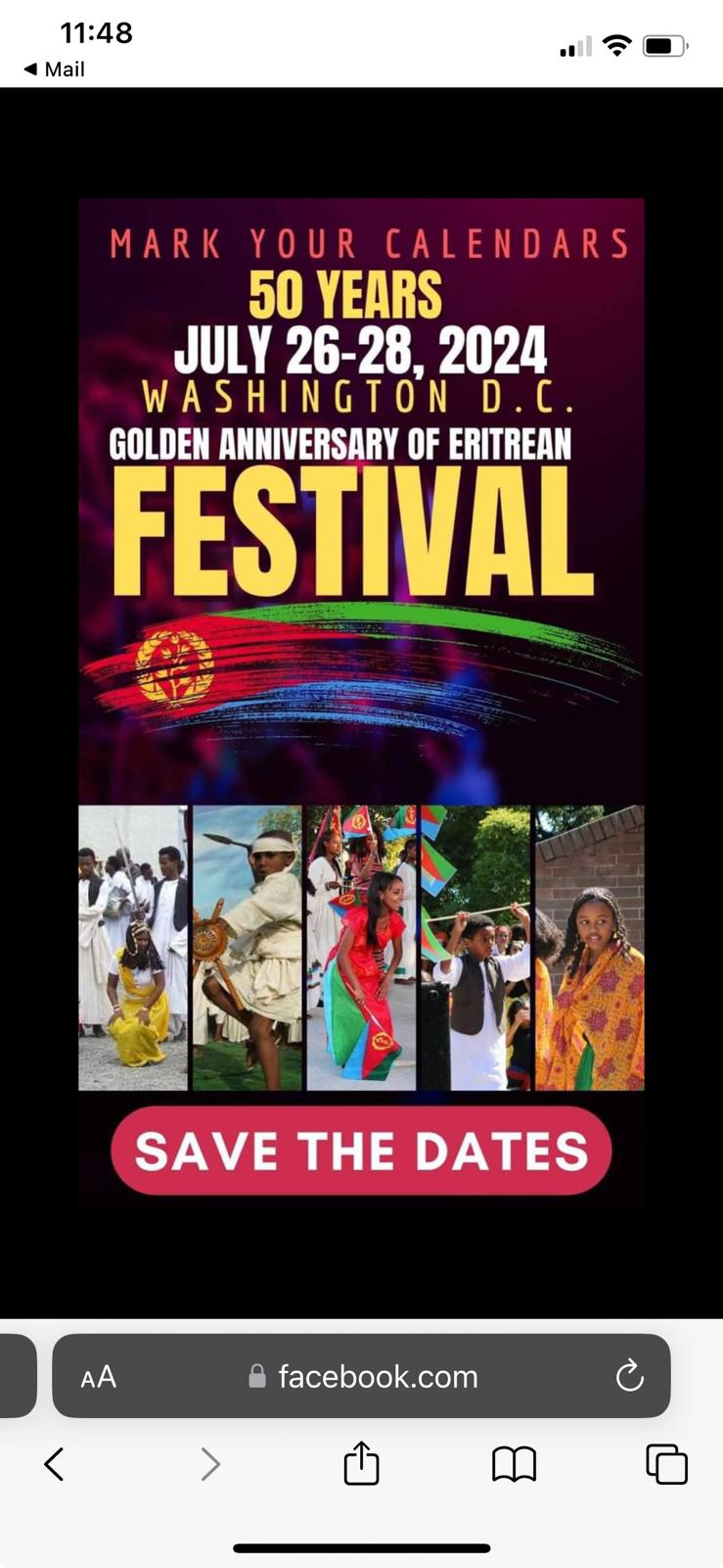ፈስቲቫል ኤርትራውያን 50 ዓመታት ኩርዓት ጽንዓትን ሓበን። ኩርዓት ባህልን ታሪኽን። ኩርዓት ቃልስን ዓወትን። ኩርዓት ድልዉነትን ተወፋይንርትን። እንሆ ንመበል 50 ኣብ ዋሺንግቶን ዲሲ ክበዓል ንኤርትራውያንን መሓዙትን ዘኤንግድ ዓቢ ምድላዋት ተገሩ ስለ ዘሎ ኣብዚ ተጠቒሱ ዘሎ ቦታን ወርሕን ዕለትን ጉዕዞ ናብ ፈስቲቫል ዲሲ (DC) ይኩን። እዚ ዓቢ ናይ ታሪኽ ኣጋጣሚ ከይሓልፈና ንዲሲ ይኹን ጉዕዞና።