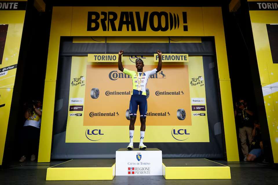 Eritrean rider Biniam Girmay said his win in the third stage of the Tour de France was “for all Africans.”THOMAS SAMSON/AFP VIA GETTY IMAGESTURIN, Italy (AP) — Eritrean rider Biniam Girmay became the first Black African rider to win a Tour de France stage Monday when he sprinted to victory in the mostly flat third leg.