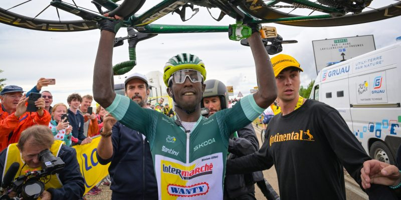 Biniam Girmay (Intermarché-Wanty) seized his second sprint win at the Tour de France on stage 8 in Colombey-les-Deux-Églises, as the Eritrean rider outsprinted Jasper Philipsen (Alpecin-Deceununck) in second and Arnaud De Lie (Lotto-Dstny) and third.
