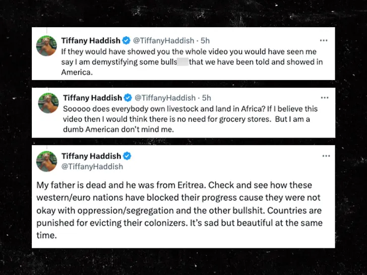 However, Tiffany has since defended herself ... as she took to X to explain she was simply trying to demystify the portrayal of Africa. As she put it ... Americans are routinely told people are starving in Africa ... regularly being shown certain images that paint a certain picture.