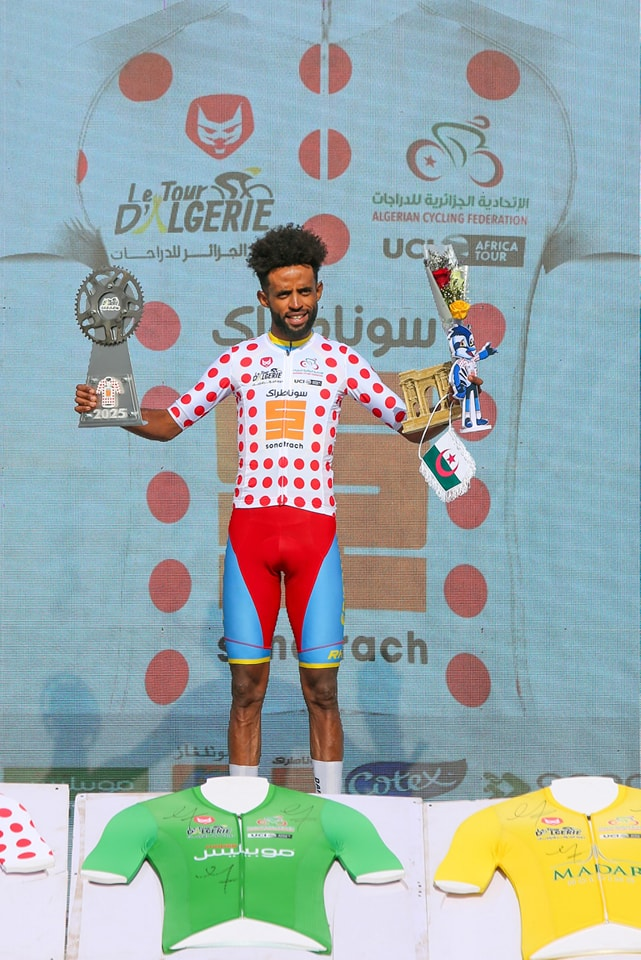 The polka dot jersey for the best climber remained on the shoulders of the Eritrean Berhane Hebron, while the Eritrean, Maekele Milkiyas, kept the white jersey for the best hope (U23).