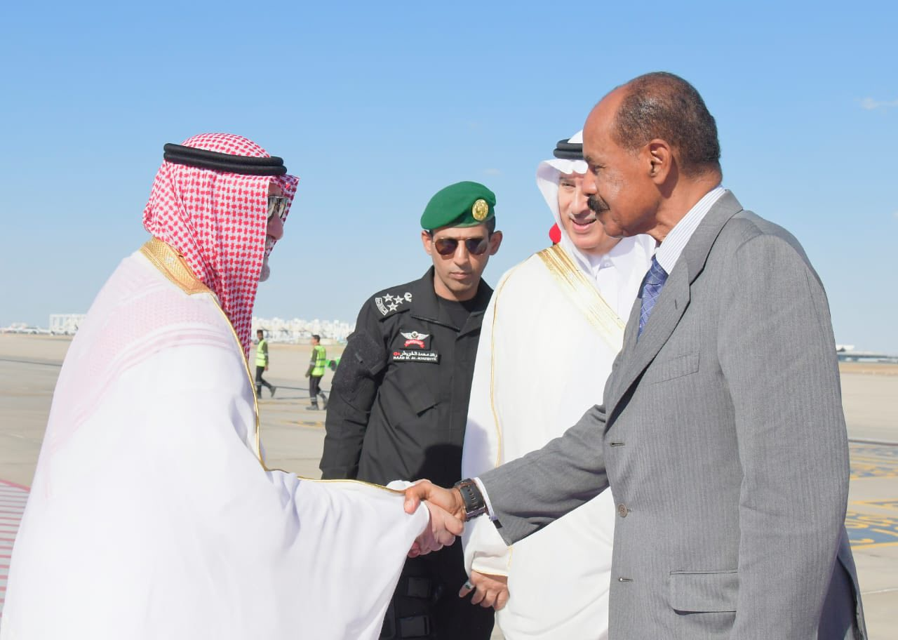 He was received at King Abdulaziz International Airport by His Royal Highness Prince Saud bin Mishaal bin Abdulaziz, Deputy Governor of Makkah Region; His Excellency Saleh Al-Turki, Mayor of Jeddah; Major General Saleh Al-Jabri, Director of Makkah Region Police; Abdulrahman Osman Saeed, Eritrean Consul General in Jeddah; and Ahmed bin Thafir, Director General of the Royal Protocol Office in Makkah Region.