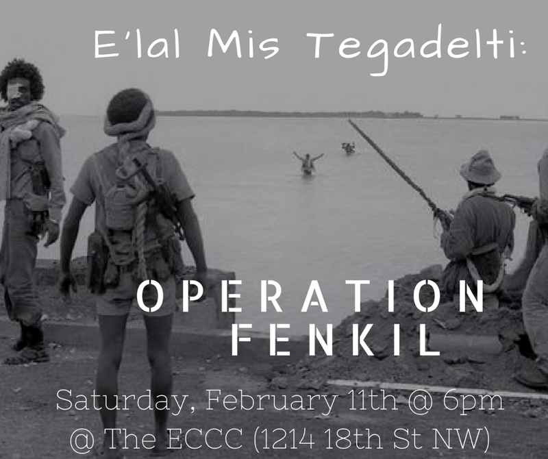 Please join us and our distinguished guest speakers for a special event commemorating the 2th anniversary of Operation Fenkil- the catalyst battle that paved the way for Eritrean independence. Learn about this historical event in Eritrean History from the primary sources- Tegadelti that fought in the battle.