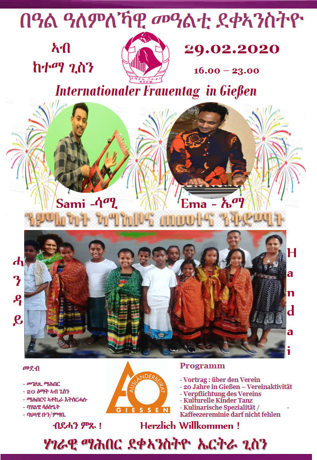 8 መጋቢት - ኣህጉራዊ መዓልቲ ደቀኣንስትዮ - ኣብ ከተማ ጊስን * 29-02-2020 * 8 Maerz - Internationaler Frauentag in GIESSEN (Germany)