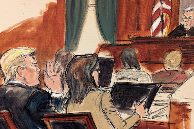 Judge Lewis Kaplan, right, admonishes Donald Trump and his attorney Alina Habba in court.