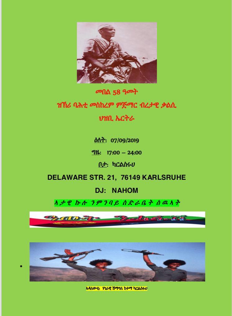 ጽምብል ብዓል ሓደ መስከረም ኣብ ከተማ ካርልስሩወ **** ሃገራዊ ሽማግለ ከተማ ካርልስሩወ ንኹሉ ኤርትራዊ ዜጋን ኣዕሩኽ ኤርትራን ብኽብሪ ትዕድም