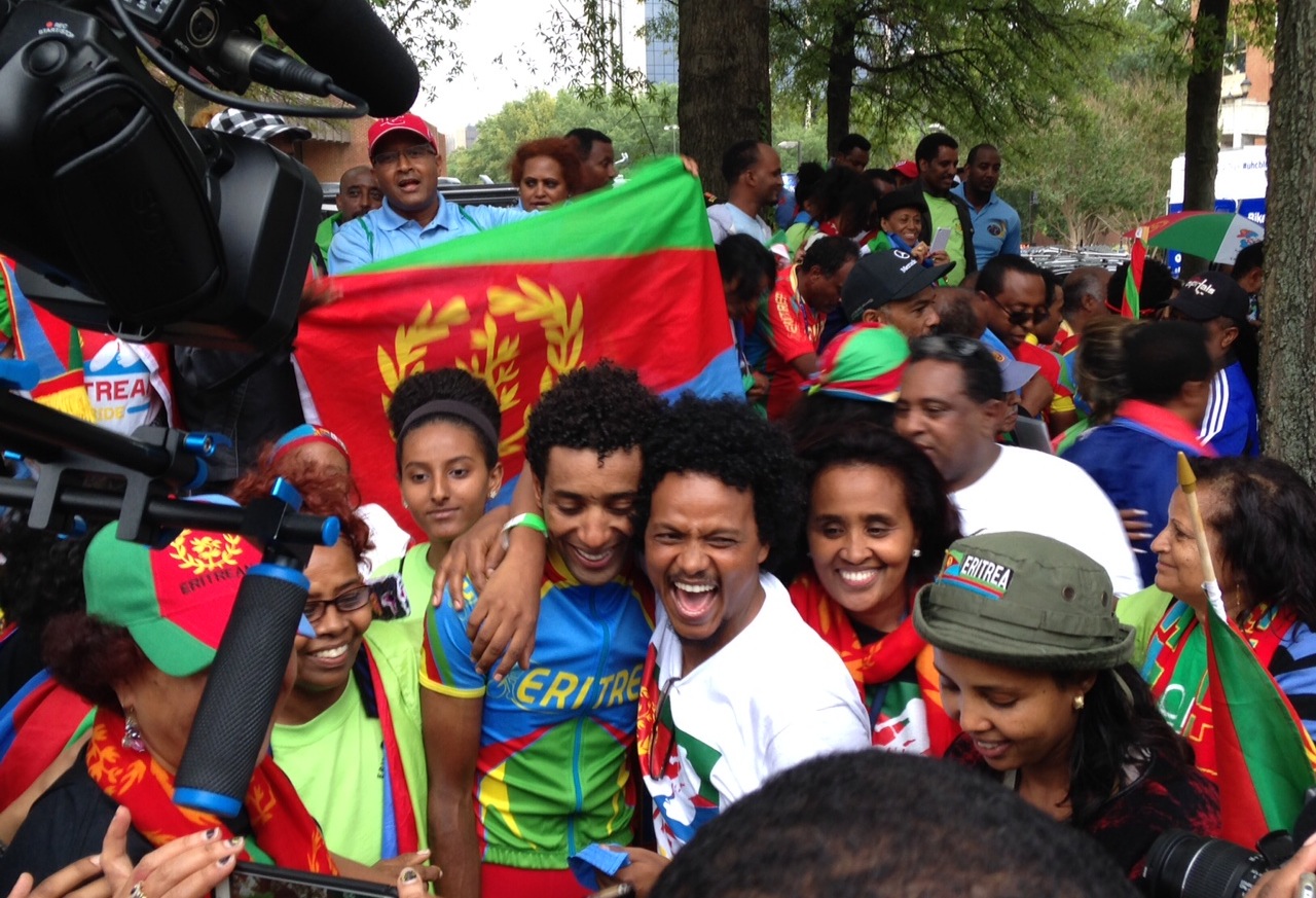 They’re not very hard to spot. Just look for the dozens of enormous Eritrean flags fluttering