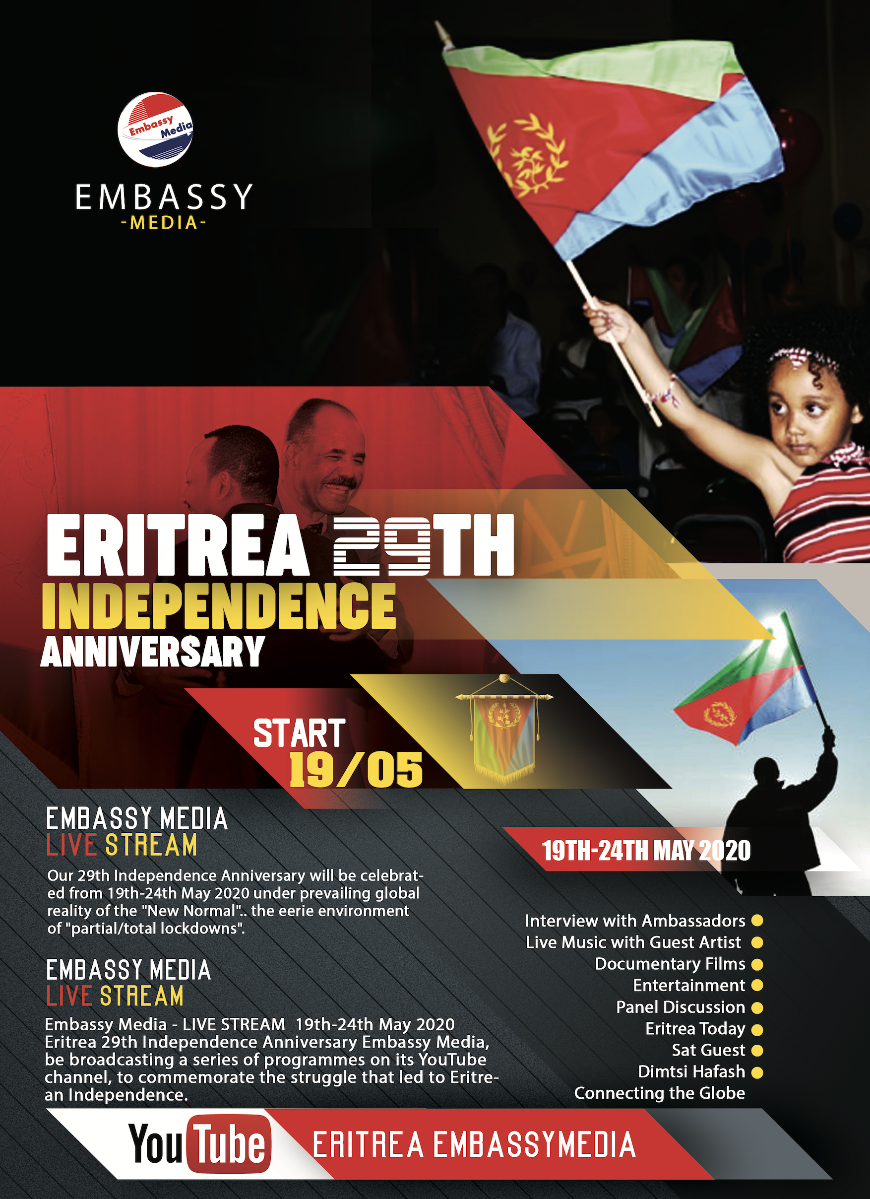 You are cordially invited to celebrate the 29th Eritrean Independence Anniversary from 19 - 24 May 2020.