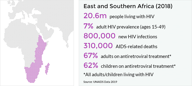 · East and Southern Africa is the region most affected by HIV in the world and is home to the largest number of people living with HIV.
