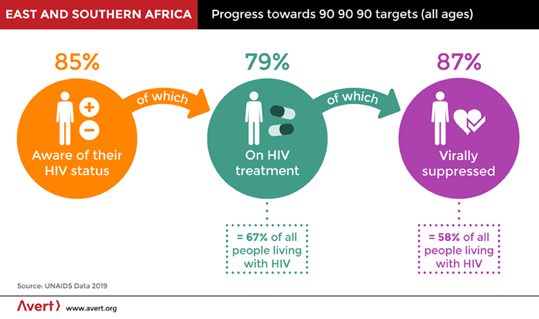 In recent years, a number of countries in the region such as Botswana, Kenya, Uganda, Malawi and Rwanda have implemented national campaigns to encourage uptake of HIV testing and counselling (HTC). In 2018, 85% of people living with HIV had knowledge about their status – a significant improvement from 77% in 2015 and higher than the global percentage in 2018 (79%).57 58