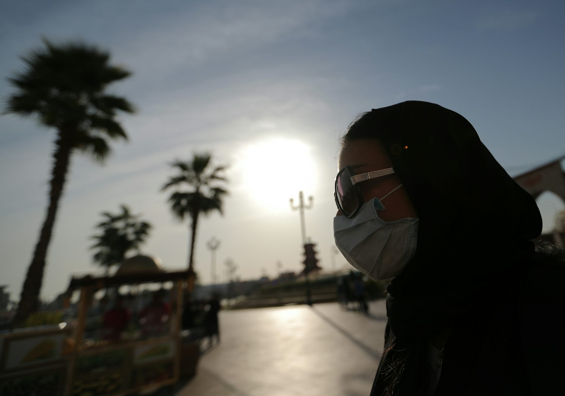 A researcher wearing a face mask and gloves as a preventive measure inside a laboratory.