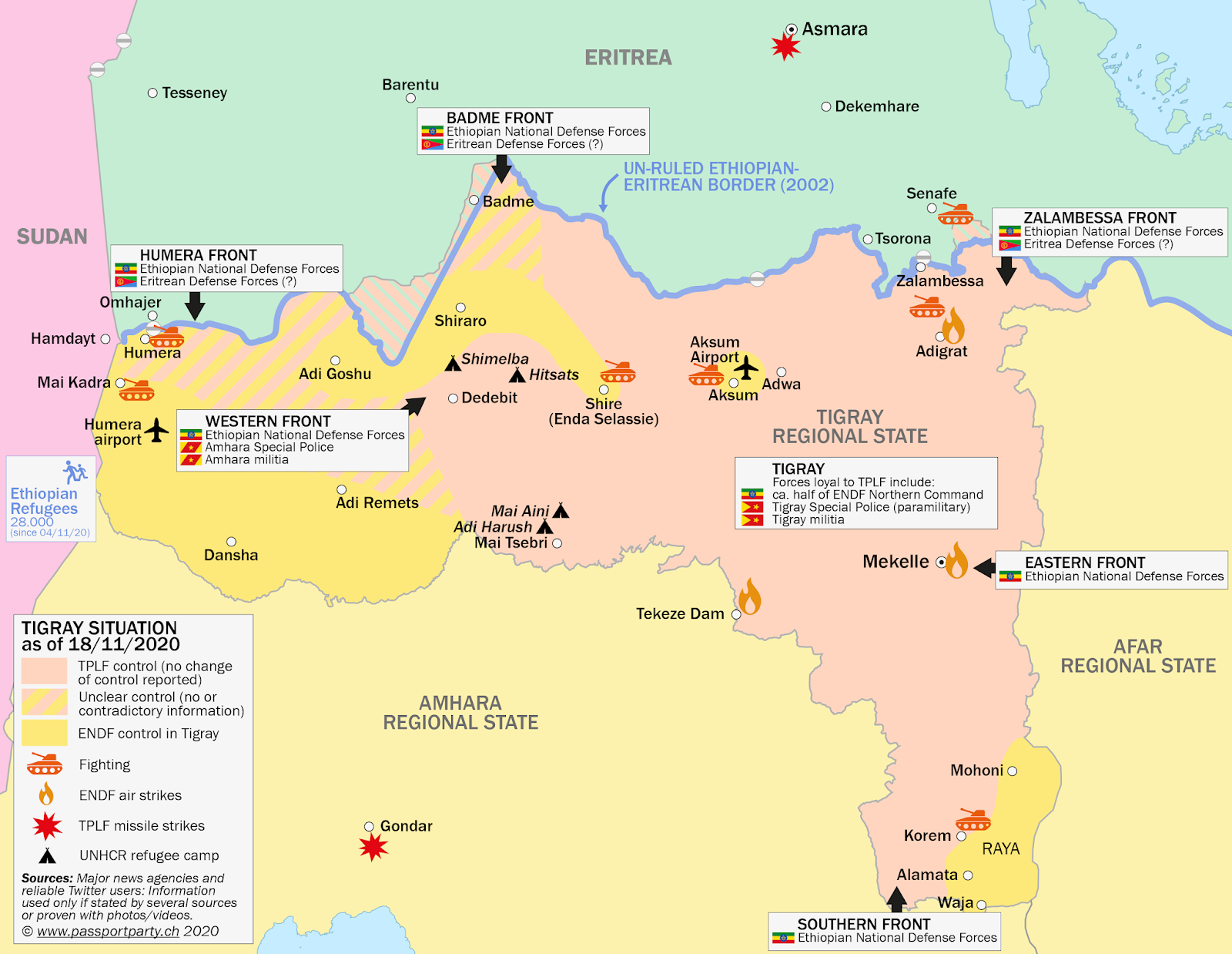 Abiy may hope the federal army’s military power will be enough to win the day, and that federal troops will manage to topple the TPLF this time, unlike when they fought the Derg and prevailed. Then, of course, the TPLF could partly draw on EPLF support, even if the relationship between both movements was always characterised by complex contradictory dynamics. Now, Eritrea is perhaps the only power in the region welcoming Abiy’s move, as both are united by a deep distrust or even hate of the TPLF. Whether Eritrea plays an active role in the current military action is hard to verify, as claims and counter-claims circulate on social media and in other networks, claims that speak more to the ideological beliefs of those who put them out than the truth. What seems likely that at least the Eritrean side allows federal Ethiopian army staff access to its territory to recuperate.