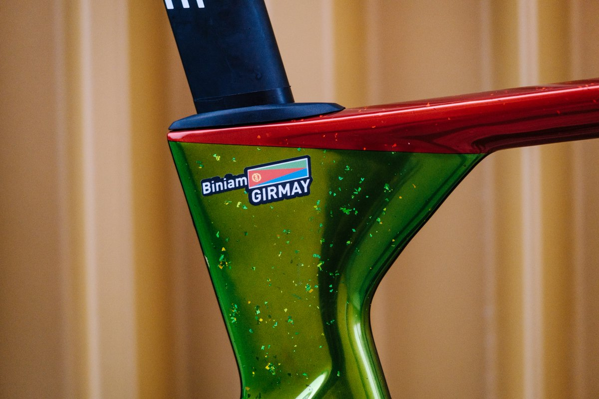 Biniam Girmay will compete in the World Championships with a custom CUBE Litening C:68X painted in the colors of Eritrea