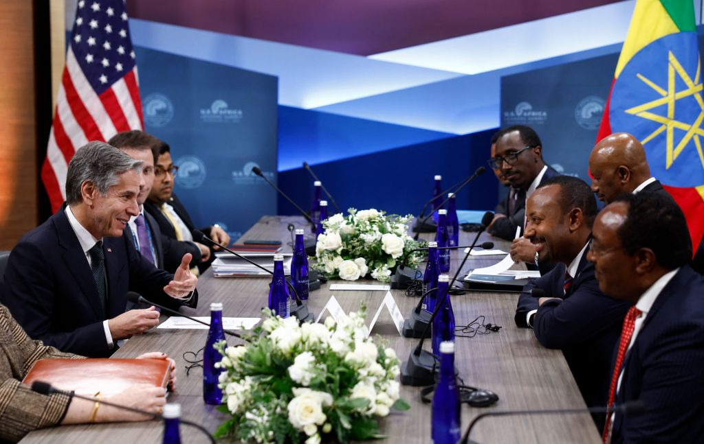 US secretary of state Antony Blinken meets with Ethiopian prime minister Abiy Ahmed during the US-Africa Leaders Summit at the Walter E. Washington Convention Center in Washington, DC on December 13, 2022. (Evelyn Hockstein / POOL / AFP via Getty Images)
