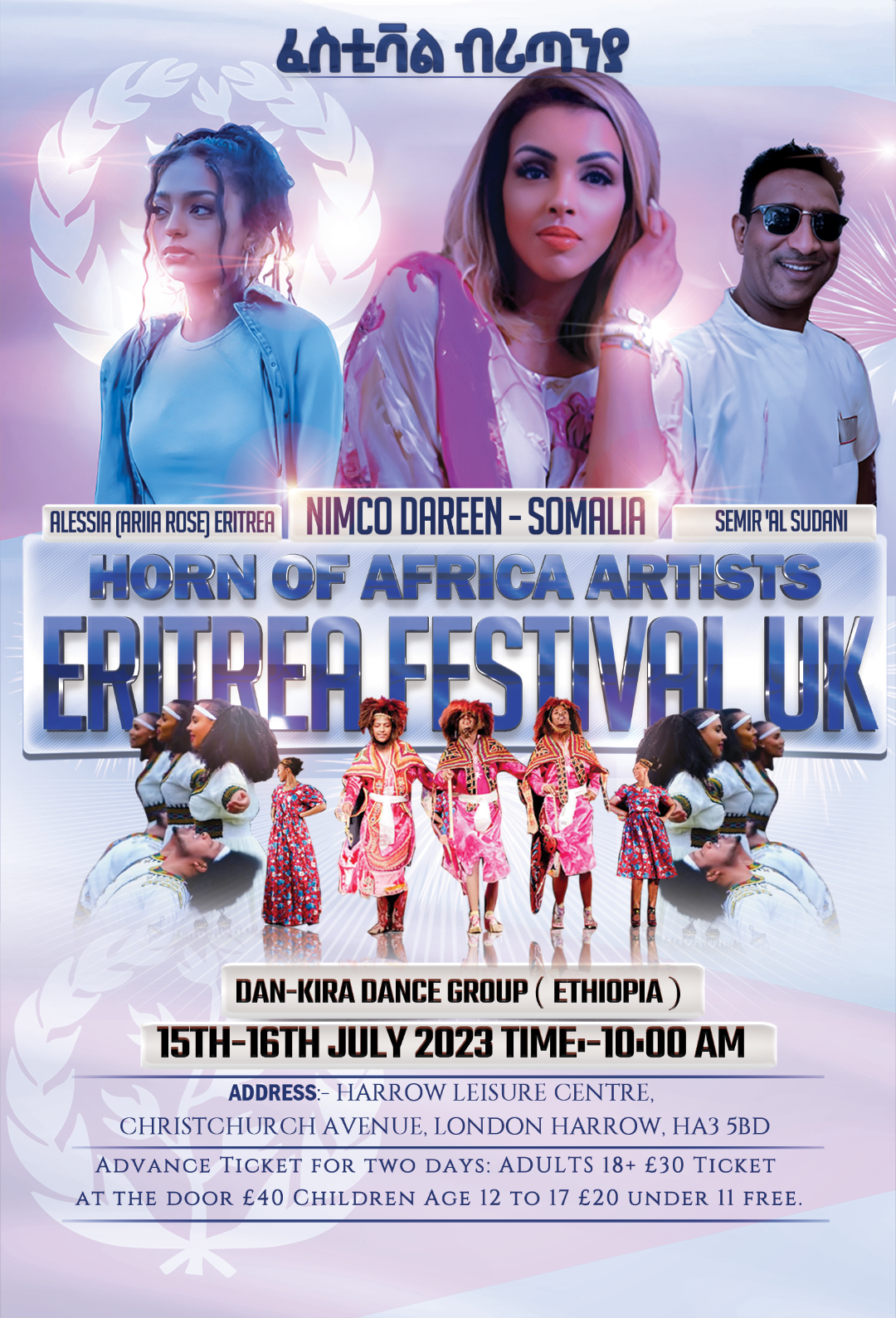 This year is a celebration of Eritrean values and culture; features different spectacular shows. The Festival will take place at the Leisure Centre in Harrow, with a great line up artists, such as #HelenMeles, #NimcoDareem, Somalia, #Semir Al Sudani, #DanKira Ethiopia, 'ARIIA Rose' other talented artists. It is this ability to view all parts of the musical spectrum through the eyes of so many different performers, young and old that truly gives the festival its Eritrean prestige.