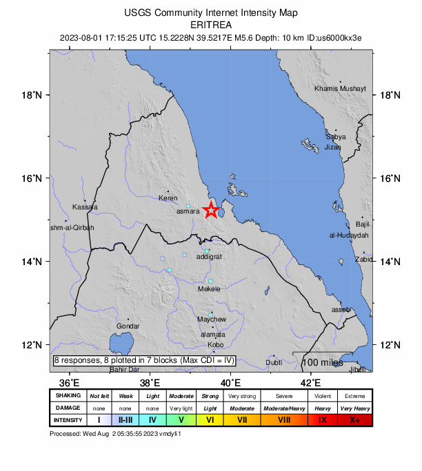 | 5.6 | 10 km | Eritrea: Ethiopia | IRIS |