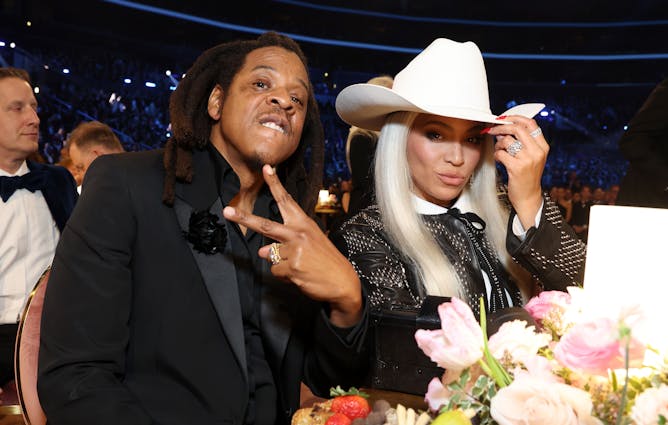 Beyoncé and her husband, Jay-Z, at the 66th Grammy Awards on Feb. 4, 2024, in Los Angeles.