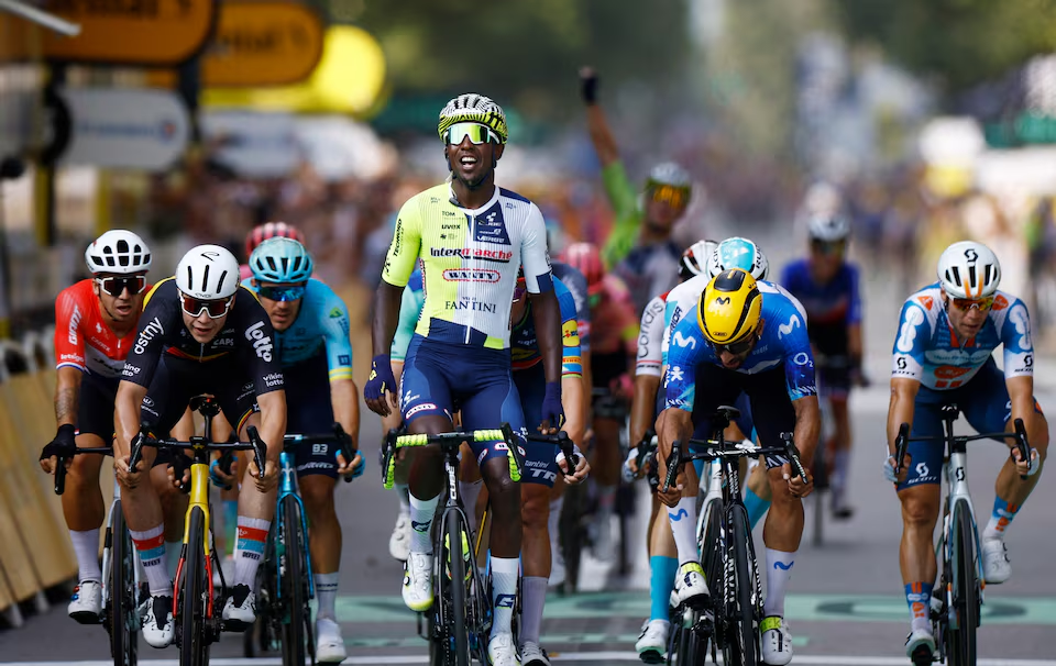 Girmay also made history in Italy two years ago when he won a stage at the Giro d’Italia to become the first Black African to take a victory in a Grand Tour, the term that encompasses the three major three-week races: the Giro, the Tour and the Spanish Vuelta.