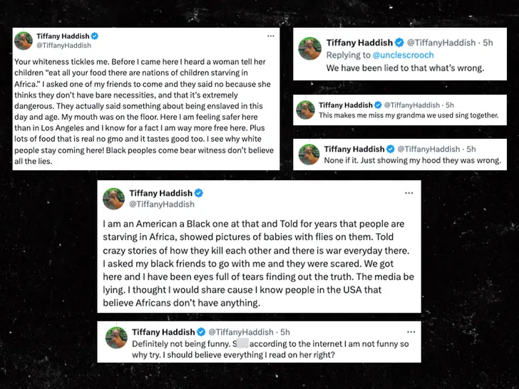 However, Tiffany has since defended herself ... as she took to X to explain she was simply trying to demystify the portrayal of Africa. As she put it ... Americans are routinely told people are starving in Africa ... regularly being shown certain images that paint a certain picture.