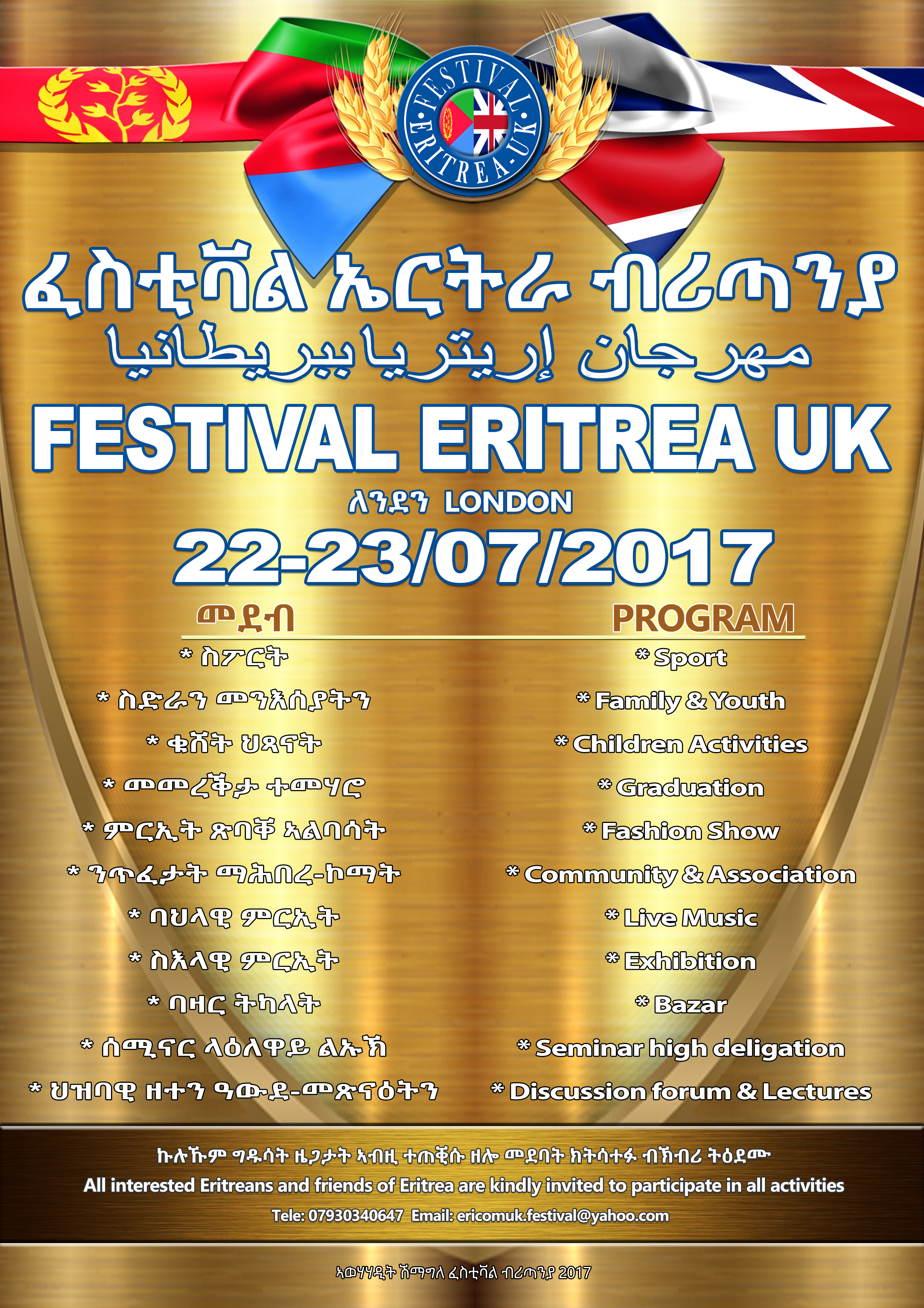 Our festival has been playing a great role in enabling Eritrean in the diaspora identifies with their nation, even when most have not even been to Eritrea. The UK Eritrean Festival 2017 takes place at a time of great historical cultural significant to Eritreans.