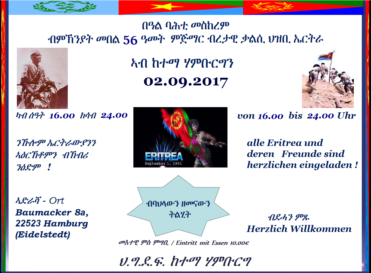 Eritrean in Hamburg Germany celebrating the 56th Anniversary of the Armed Struggle for Eritrean Independence on the 2nd of Sep 2017
