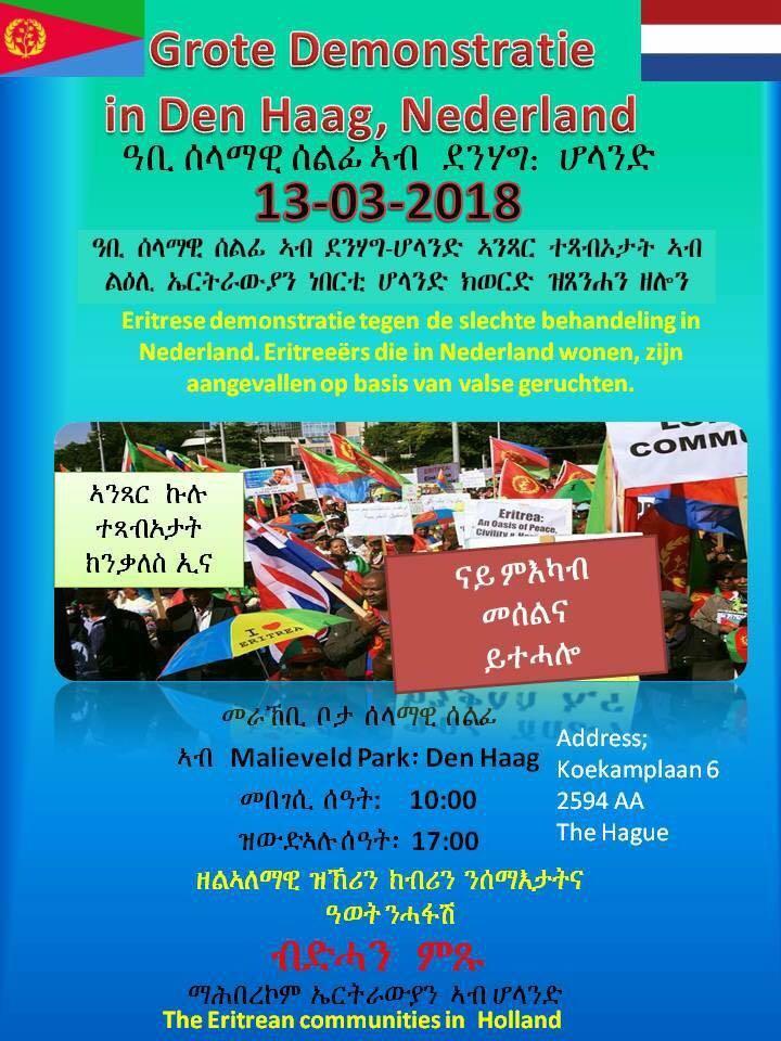 Grote Demonstratie in Den Haag – Nederland 13-03-2018 by The Eritrean Communities in Holland