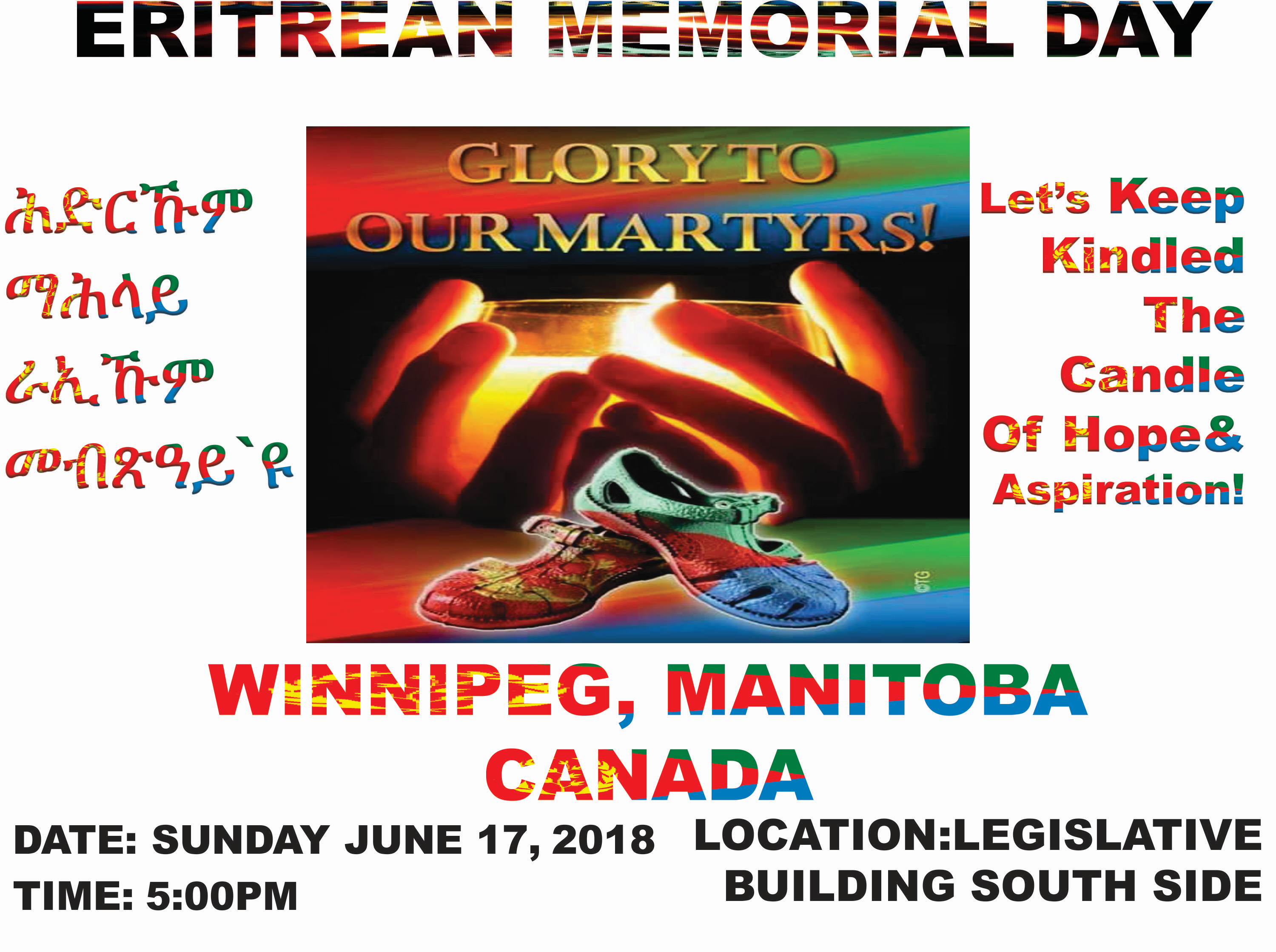ERITREAN COMMUNITY IN WINNIPEG iNC መዓልቲ ስውኣት MEMORIAL DAY SUNDAY JUNE 17 2018 WINNIPEG CANADA