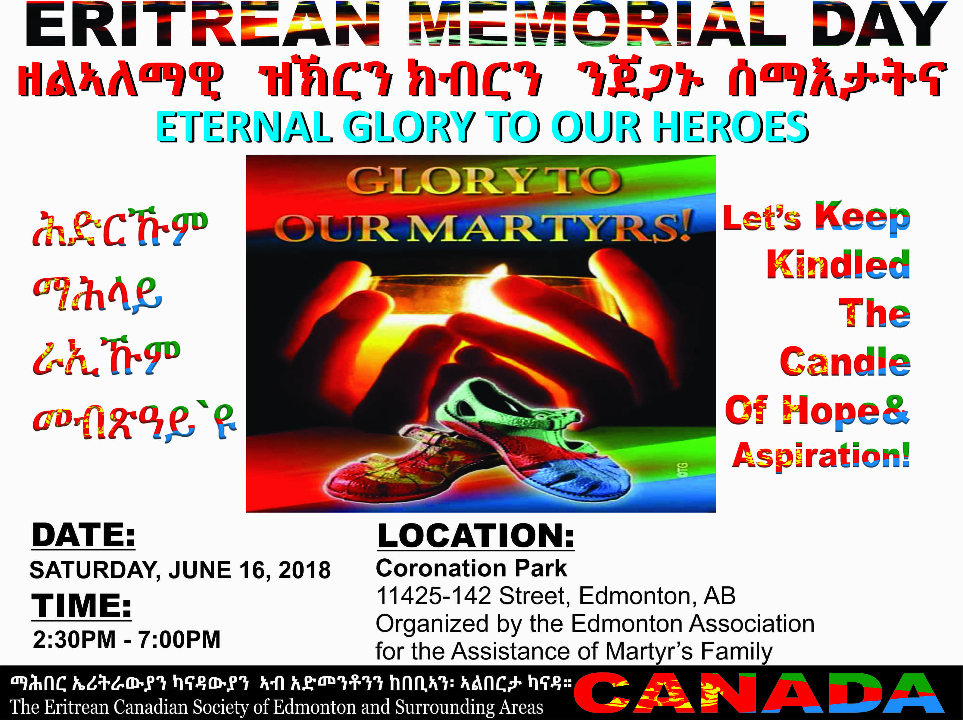 መዓልቲ ስውኣት ERITREAN COMMUNITY IN EDMONTON: ERITREAN CANADIAN SOCIETY OF EDMONTON AND SAROUNDING AREAS MEMORIAL DAY SATURDAY JUNE 16 2018 CANADA